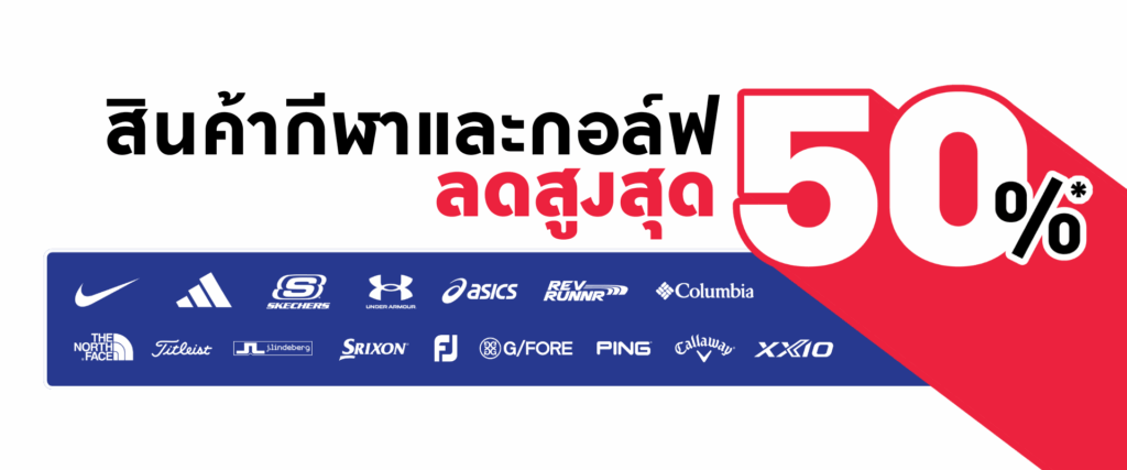 - สินค้ากีฬาและกอล์ฟ ลดสูงสุด 50%