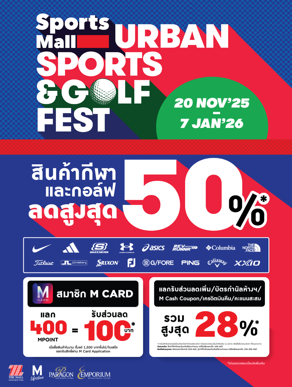 พร้อมให้คุณสนุกแบบ Active รับความคุ้มส่งท้ายปี มาช้อป ออกกำลังกาย และเติมแรงบันดาลใจไปด้วยกันที่ SportsMall Urban Sports & Golf Fest ตั้งแต่วันที่ 15 กันยายน 2568 – 31 ตุลาคม 2568